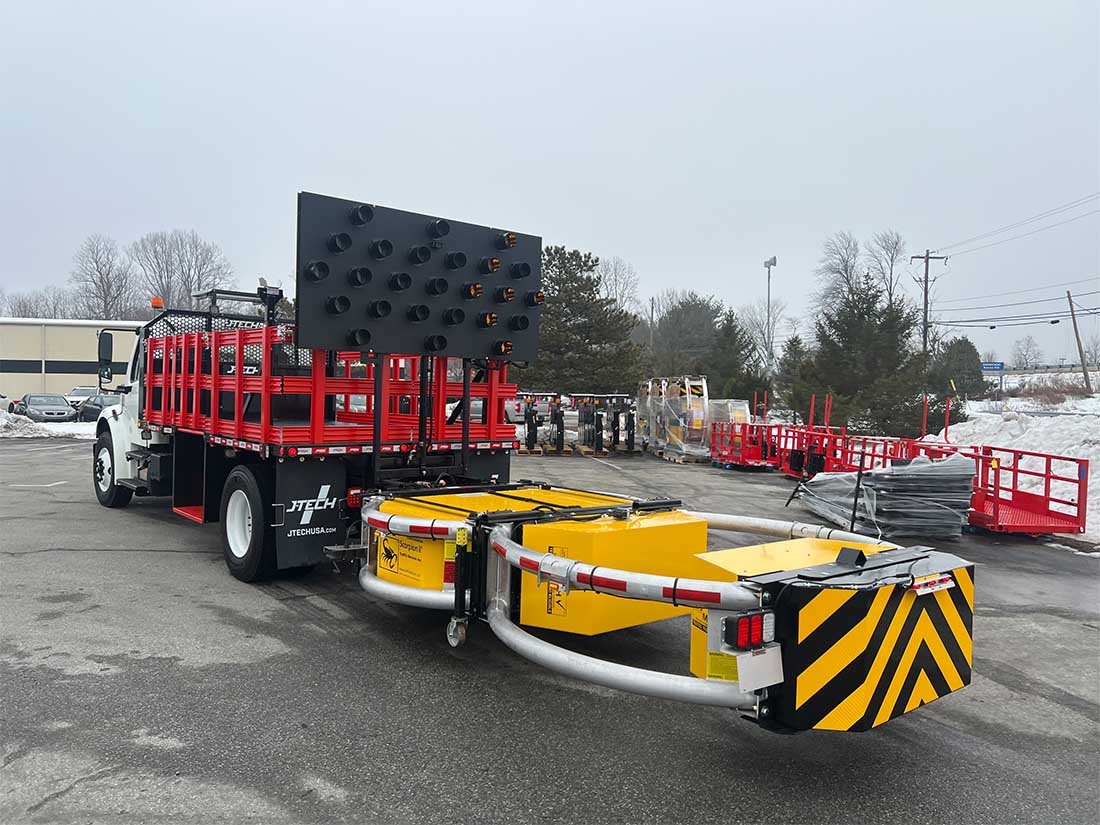 Wanco 25-Lamp LED Arrow Board Kit - In-cab controls - Solar panel mounted on bulkhead - Battery box with maintenance-free batteries - Works in conjunction with Scorpion attenuator pump and controls