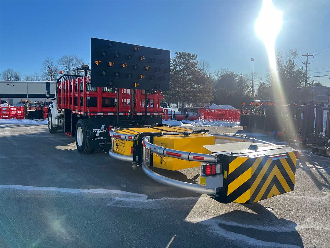 Wanco 25-Lamp LED Arrow Board Kit - In-cab controls - Solar panel mounted on bulkhead - Battery box with maintenance-free batteries - Works in conjunction with Scorpion attenuator pump and controls