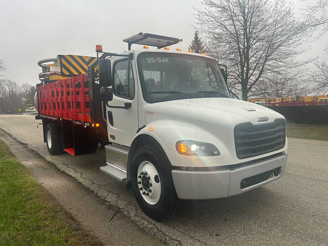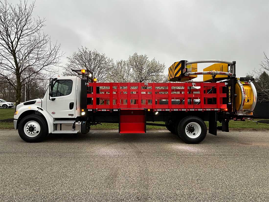 Wanco 25-Lamp LED Arrow Board Kit - In-cab controls - Solar panel mounted on bulkhead - Battery box with maintenance-free batteries - Works in conjunction with Scorpion attenuator pump and controls