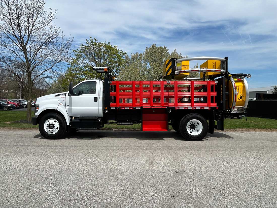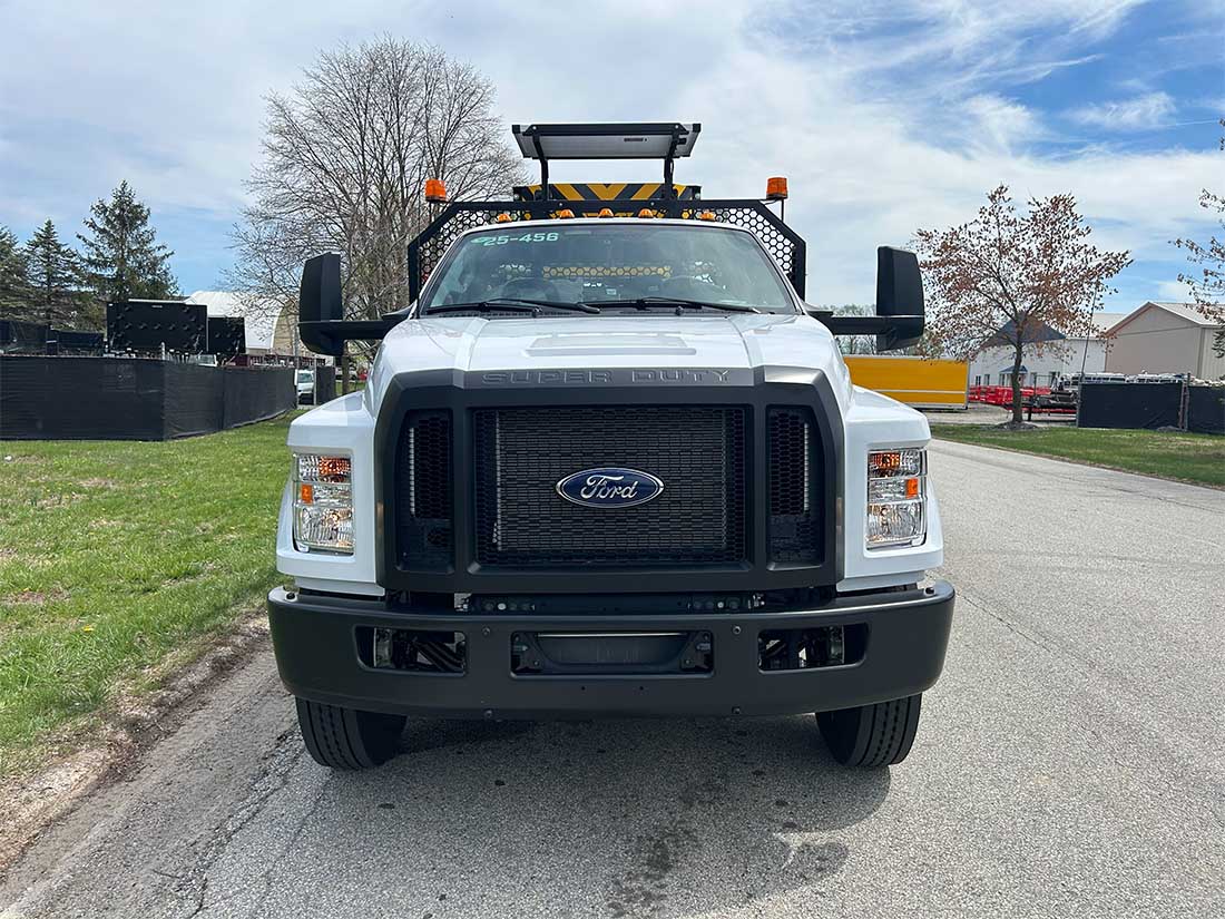 Wanco 25-Lamp LED Arrow Board Kit - In-cab controls - Solar panel mounted on bulkhead - Battery box with maintenance-free batteries - Works in conjunction with Scorpion attenuator pump and controls